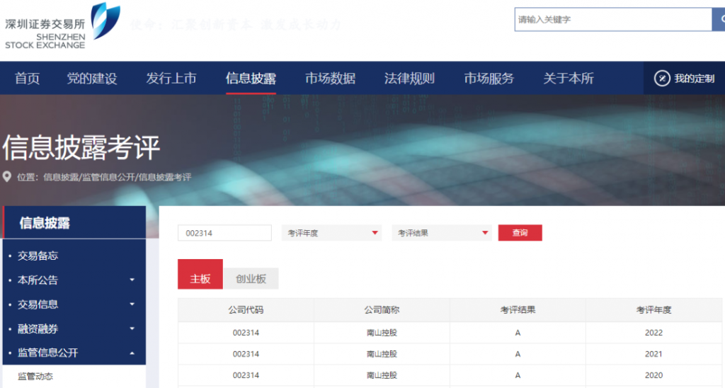 2023.10近日,深圳證券交易所公布了深市上市公司2022-2023年度信息披露評價結(jié)果。南山控股(002314.SZ)再次取得最高考核評級“A”,這是公司連續(xù)第三年獲此殊榮。