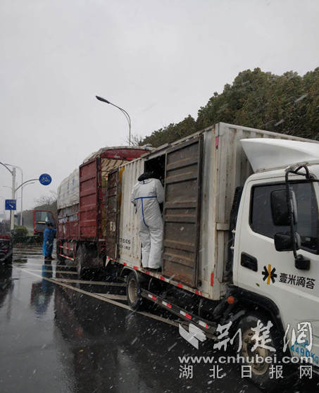 2020.02荊楚網(wǎng)客戶端-荊楚網(wǎng)消息(記者陳泉 通訊員張敏、李莉)2月15日上午,一輛載有援漢蔬菜的貨車在前往武漢亞心總醫(yī)院的路上發(fā)生故障拋錨。緊急時(shí)刻,武漢開發(fā)區(qū)寶灣物流中心派車前往過駁轉(zhuǎn)運(yùn),經(jīng)過近5個(gè)小時(shí)的努力,這批來自湖南張家界高峰土家族鄉(xiāng)的10噸應(yīng)急蔬菜成功轉(zhuǎn)運(yùn)至武漢市亞心總醫(yī)院、武漢市精神衛(wèi)生中心等單位。